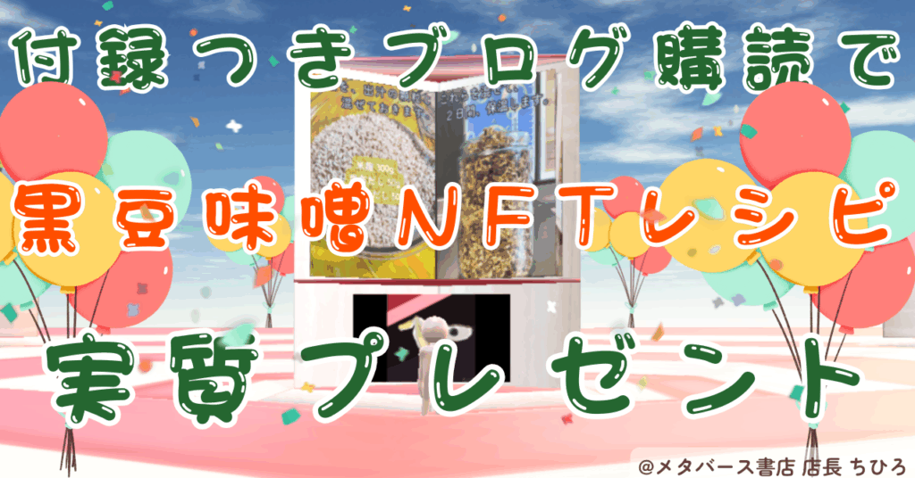 大変ご好評いただいた付録つきブログの第2弾をお届けします! 今回の有料ブログをご購読いただいた方【先着10名様】に、10冊限定発行のNFTレシピ®「黒豆味噌作ってみた」のエアドロップNFTを、プレゼントコード形式で無料プレゼントいたします!